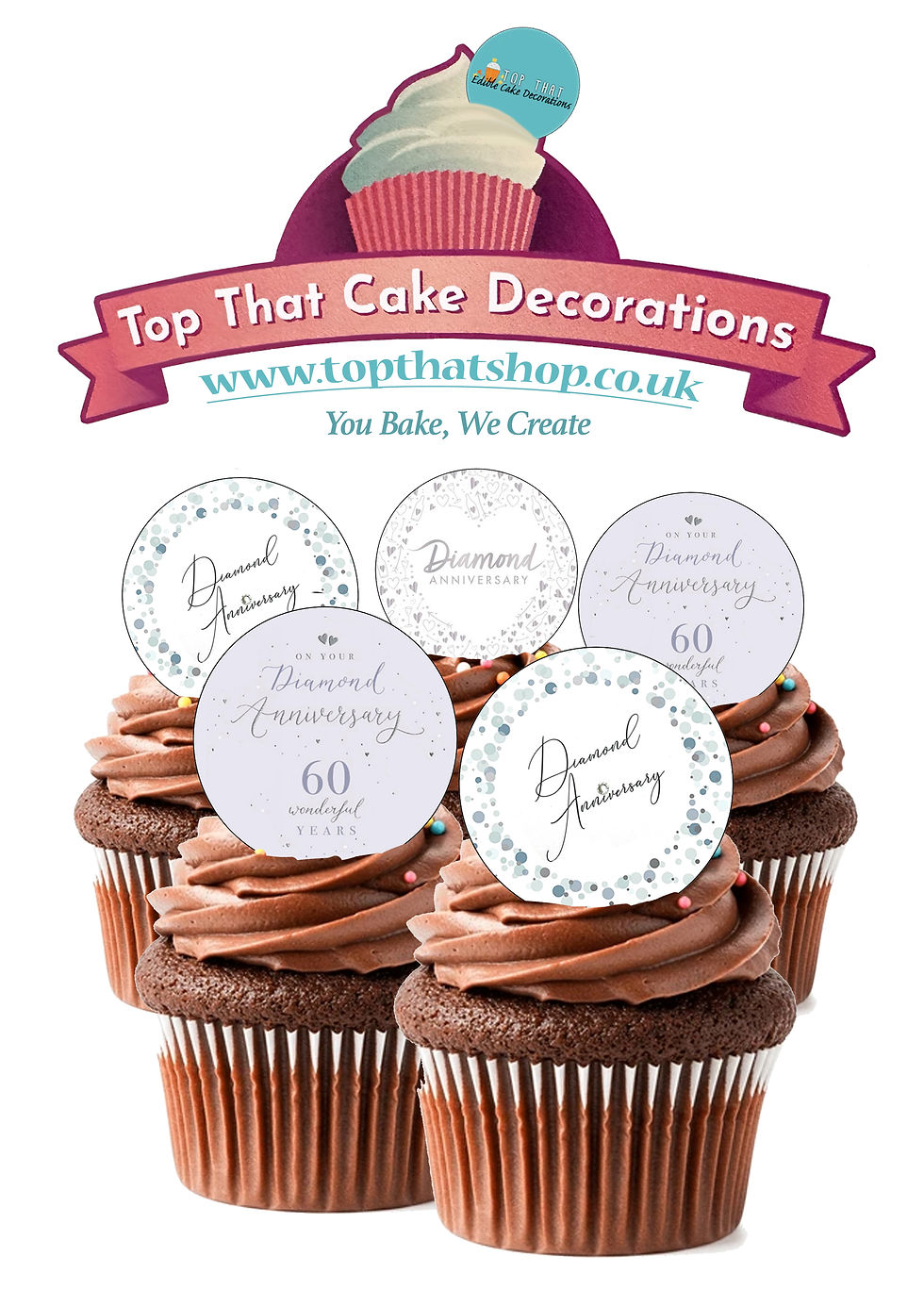 15 Pre-Cut 60th Diamond Wedding Anniversary Edible Wafer Paper Toppers