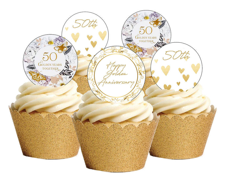 15 Pre-Cut 50th Golden Wedding Anniversary Edible Wafer Paper Toppers