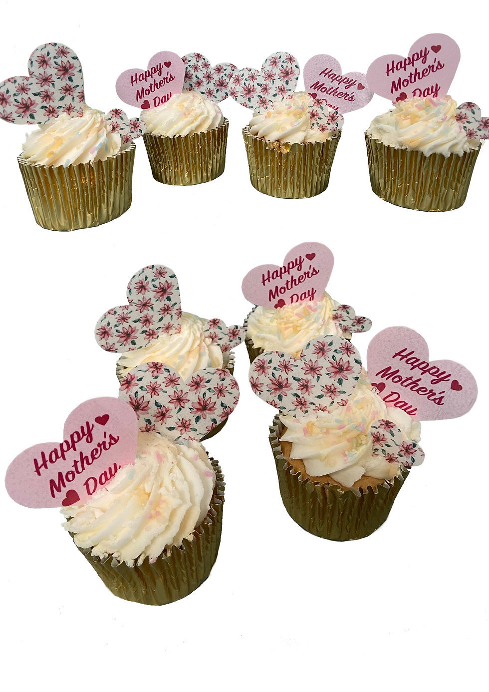 24 Pre-Cut Mixed Size/Design Heart Mother's Day Thin Edible Wafer Paper