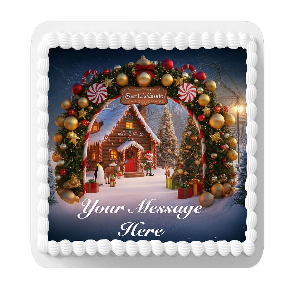 Christmas Santa's Grotto PERSONALISED MESSAGE 7.5 Inch SQUARE Icing Topper